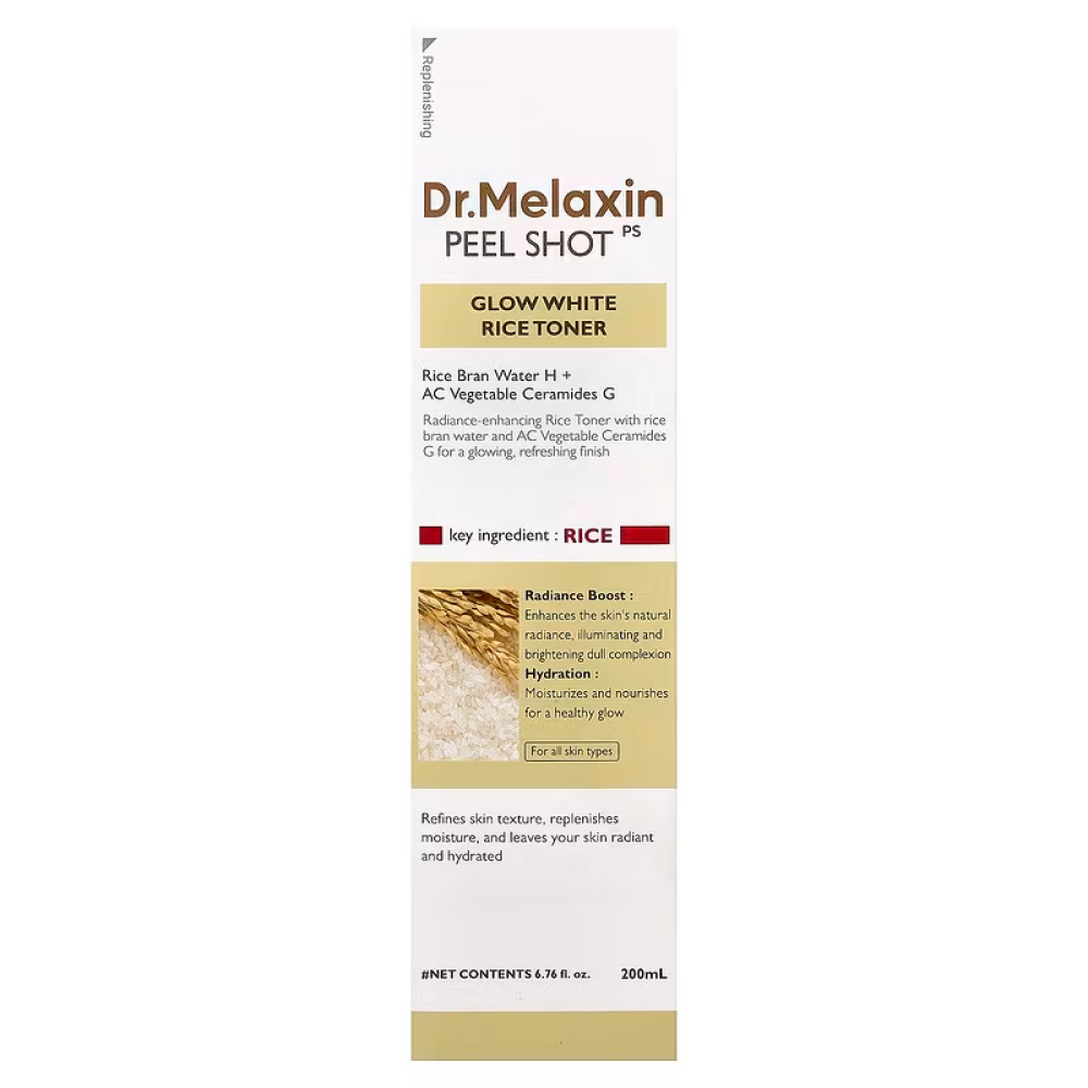 Le Peel Shot Glow White Rice Toner de Dr. Melaxin est un toner hydratant et illuminateur conçu pour améliorer l’éclat naturel de la peau et préparer la peau aux étapes suivantes de la routine skincare.